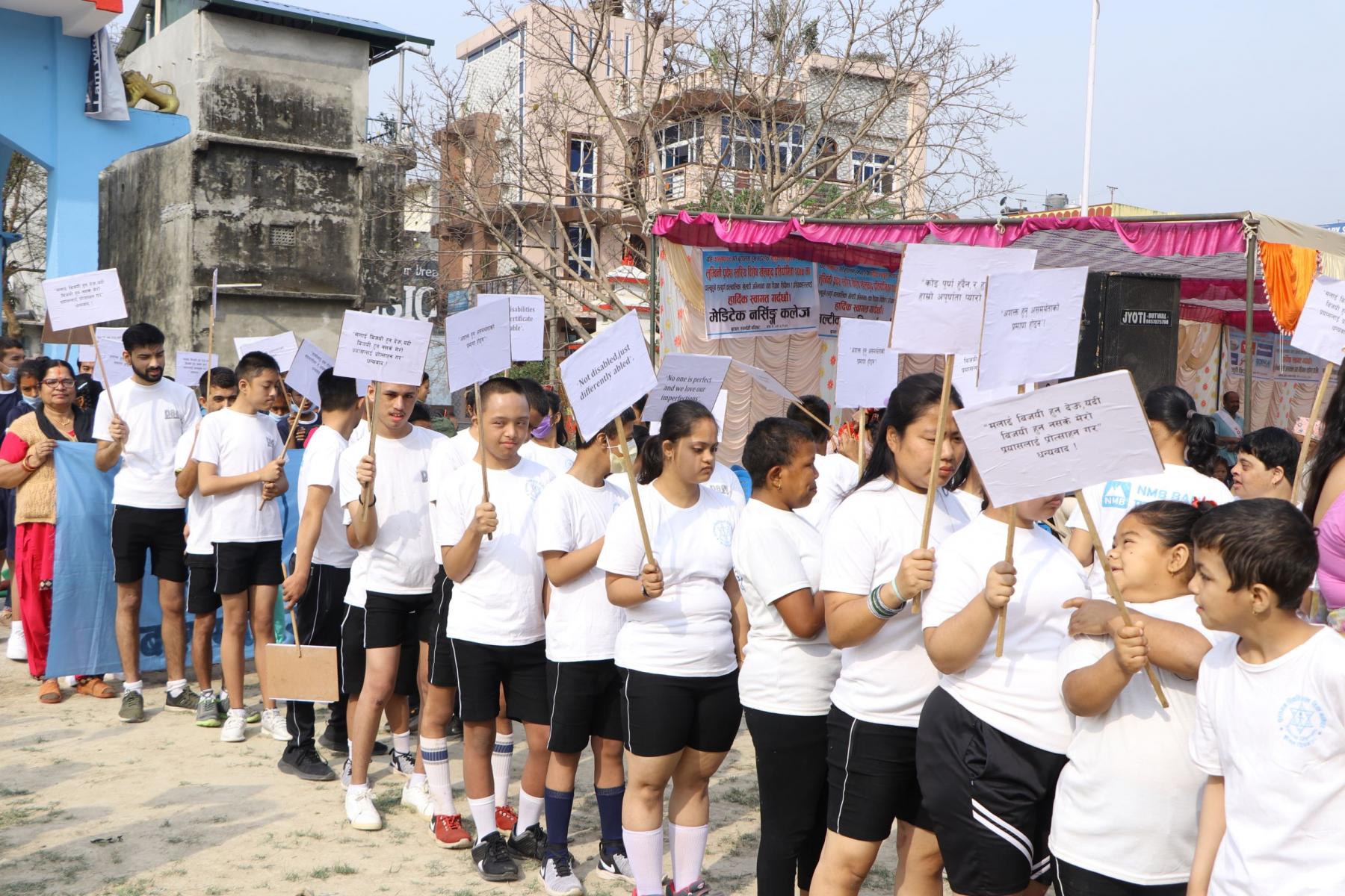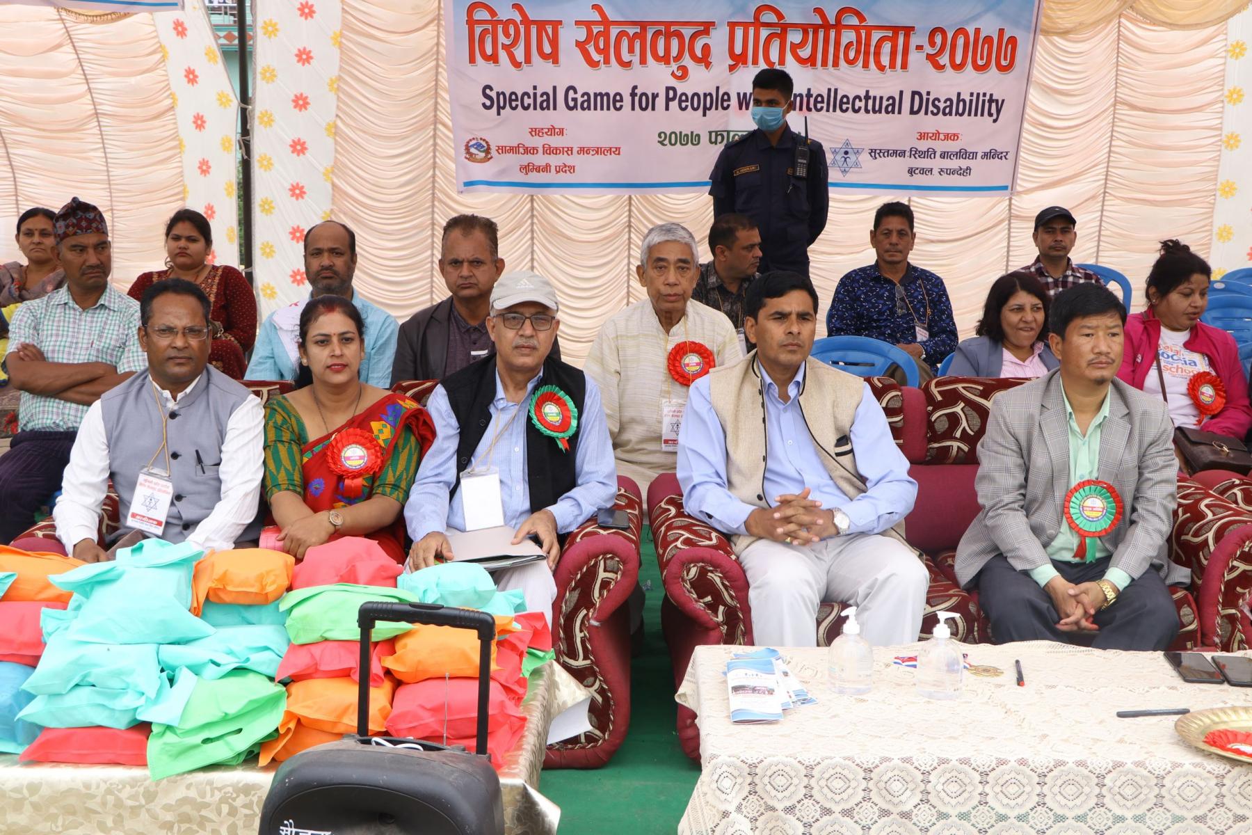 We have organise a Special game for people with Intellectual disabled children & adults , This game was organizsed lumbini province level , Nepalgung, Dang, Kapilvastu, Arghakhachi, Rupandehi , Palpa , Nawalparasi and chitwan District are invited in the game . There were 127 players participating in differents game , 50 meter ,100 meter, 200 meter, long jump, high jump, running jump, soft ball through and Boccia . In That occasion, Social welfare minister , and mayor of the city were the main guest of the program, there were 400 people participating in that game including 50 volunteer , health staff , parents , teachers , coach , and other socialist people .